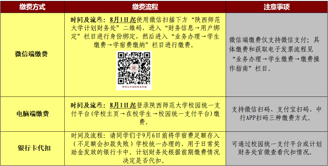 本年度在校学生(2018-2020级本科生、2019-2020级研究生)学宿费采用以下方式缴纳(均无手续费),计划财务处不再组织现场收费。
