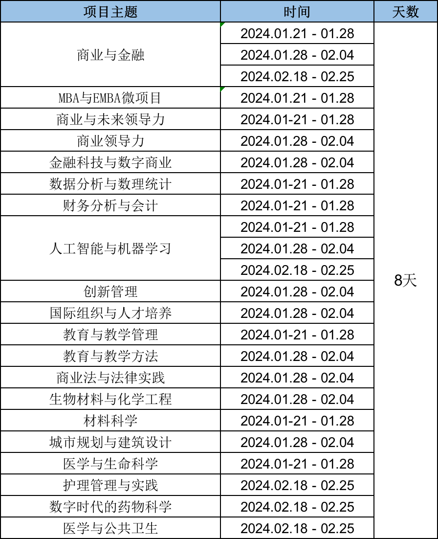 项目涵盖专业课程学习、政企参访(仅限部分项目主题)、人文参访、文化体验等,具体安排详见附件项目简章。