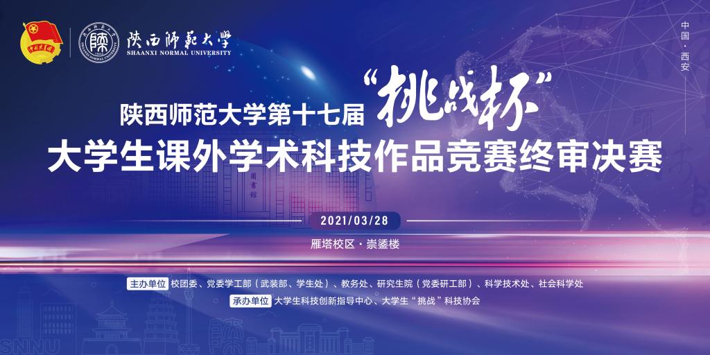 为持续提升伟德官网“挑战杯”大学生课外学术科技作品竞赛参赛作品的水平和层次,有效促进团队间的交流与学习,同时遴选优秀作品参加省级及国家级竞赛,现定于2021年3月28日(周日)在雁塔校区崇鋈楼举办第十七届“挑战杯”大学生课外学术科技作品竞赛终审决赛。本次决赛采取公开答辩形式,欢迎广大师生前来观摩交流。